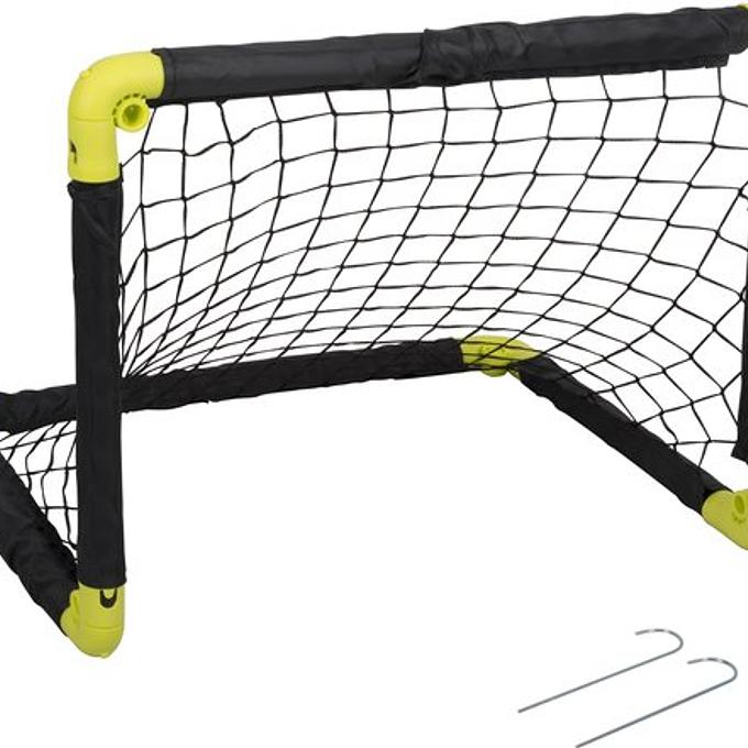 Productbeschrijving: Verbeter je scoringskansen en daag elkaar uit bij een potje voetbal met dit inklapbare voetbaldoel van Dunlop. Je hebt de goal zo opgezet dankzij het handige kliksysteem. Het goaltje is mooi compact: 55 cm lang en 44 cm hoog en diep. Overal mee naartoe Gebruik je hem even niet? Dan neemt dit opvouwbare doel weinig opbergruimte in. Bovendien neem je hem door zijn kleine formaat gemakkelijk overal mee naartoe. Handig bijvoorbeeld voor een dagje uit of op vakantie. Met de 2 grondpinnen (inclusief) zet je de voetbalgoal vast in de grond. Stevig kunststof Het doel is gemaakt van polypropyleen, een zeer stevig soort kunststof. Het is grotendeels zwart met felgele details op de hoeken.