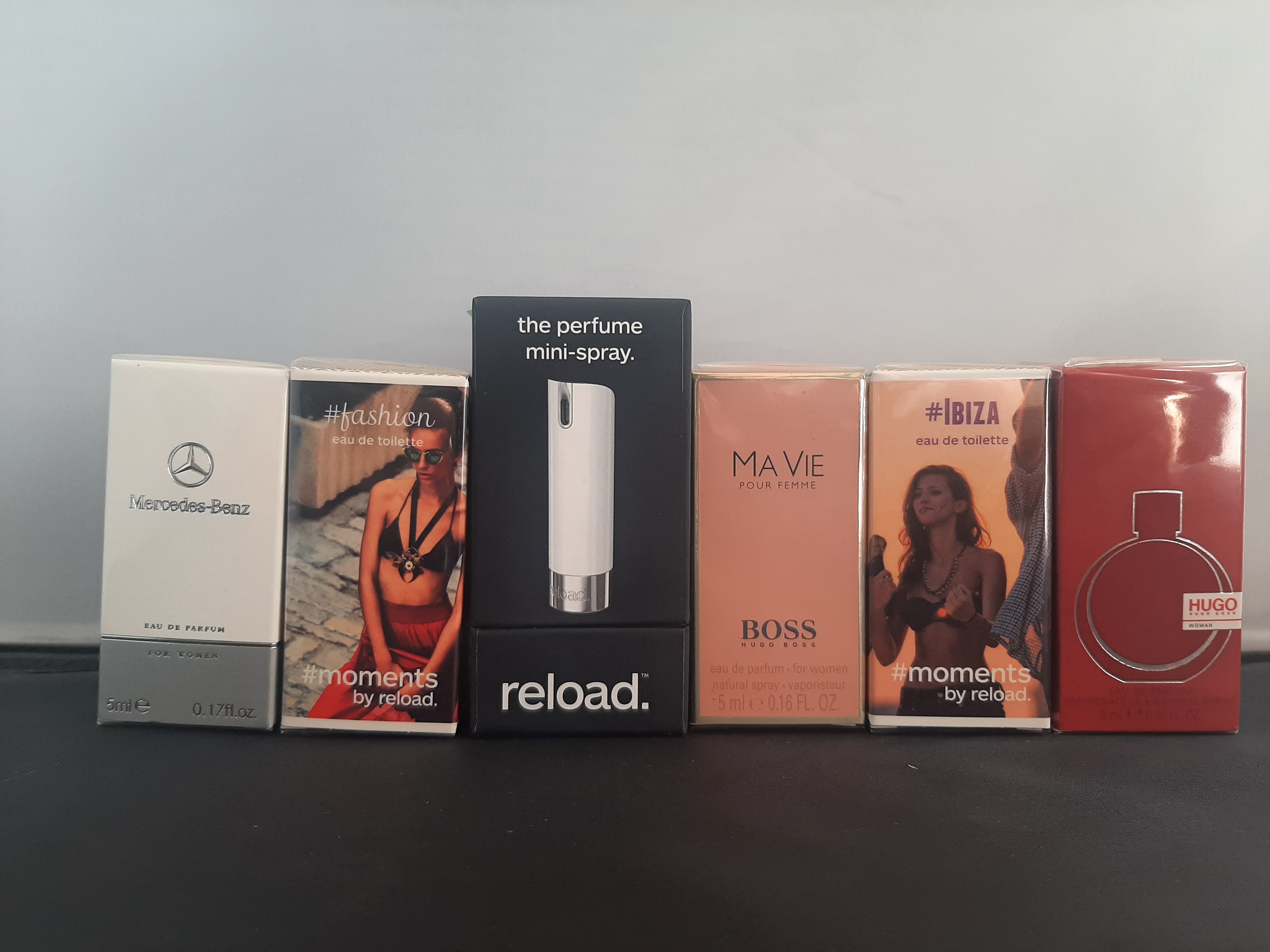 Productbeschrijving: Eau De Parfum Parfum Set 5 + navulbaar parfumflesje. Bevat 5 parfums van 5 ml. De parfums Mercedes, Fashion, ibaza, Hugo en Ma Vie