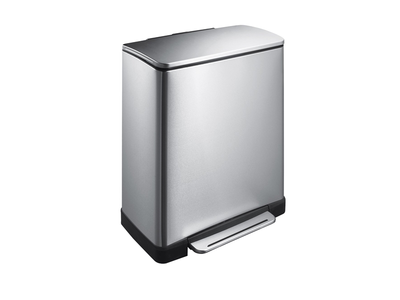 Productbeschrijving: Deze stijlvolle, rechthoekige pedaalemmer van mat RVS heeft 2 kunststof binnenemmers, ideaal voor afvalscheiding. Het heeft een inhoud van 28+18 liter en een zacht sluitend deksel.