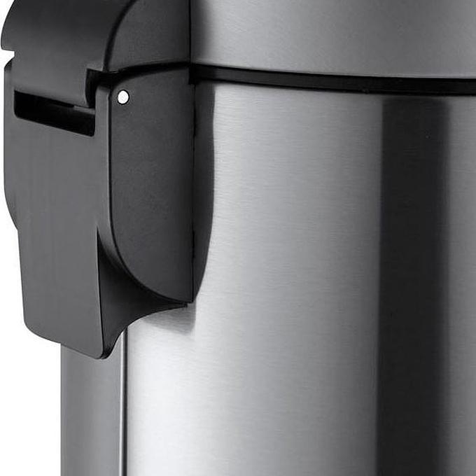 Productbeschrijving: Eenvoudige pedaalemmer met stijlvol pedaal, geruisloos sluitend deksel en kunststof binnenemmer. Voorzien van fingerprint proof coating.