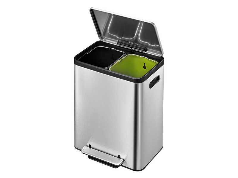 Productbeschrijving: De EKO Recycle E-Cube in de kleur mat rvs, is een stijlvolle rechthoekige pedaalemmer met extra breed pedaal en 2 kunststof binnenemmers met een inhoud van 9+10 liter, zodat jij jouw afval makkelijk kunt scheiden. De pedaalemmer is voorzien van een gedempte deksel. De stay-open functie vergrendelt het deksel, voor het makkelijk schoonmaken van de afvalbak of wisselen van de afvalzak.
