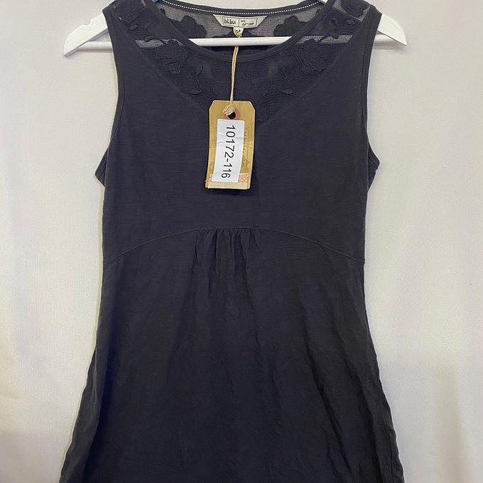 Productbeschrijving: FatFace jurkje Aneria Applique Tunic in maat S is mouwloos en heeft een elastieken taile en kanten details.