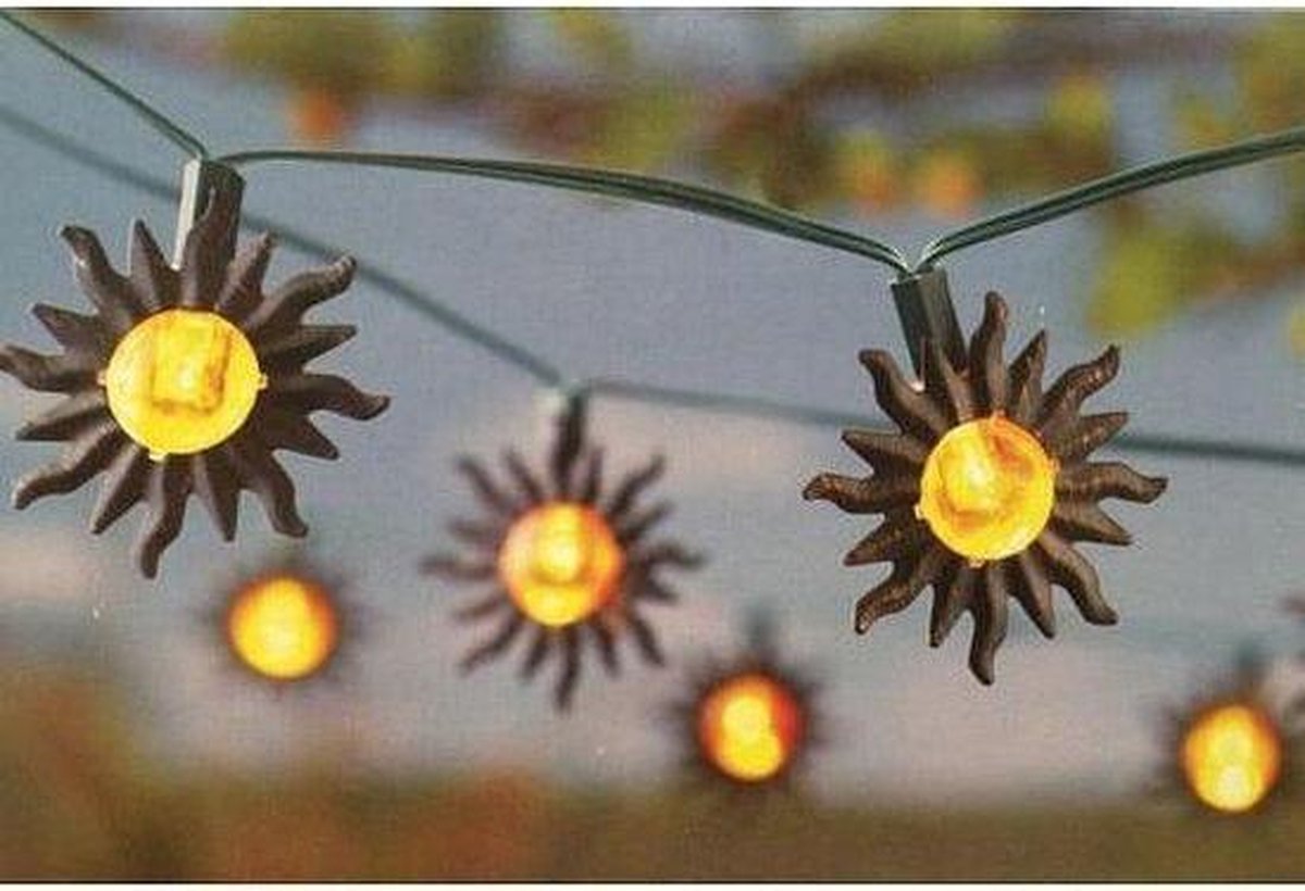 Productbeschrijving: Leuk lichtsnoer met 16 Led Zonnentjes. Deze lichtslang met led lampionnen in de vorm van een zon is geschikt voor zowel binnen als buiten. Werkt op zonne energie / solarProduct informatie:- 1 Lichtsnoer met 16 LED lampionnen Zon- Kleuren van de lampionnnen: warm wit- Materiaal lampionnen: water en weerbestendig