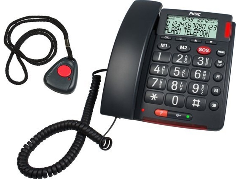 Productbeschrijving: Blijf zelfstandig met de Fysic Big Button Alarmtelefoon FX-3850. Comfort staat centraal bij dit robuuste telefoontoestel. Alles aan de FX-3850 is ontworpen met het oog op gebruiksgemak voor senioren en alleenwonenden. Per ongeluk een verkeerd nummer kiezen door priegelknopjes is verleden tijd. Via de prettig grote druktoetsen bedient u deze telefoon trefzeker en gemakkelijk. Het sprekend toetsenbord laat desgewenst horen wat u drukt. Daarnaast kunt u naam of nummer van beller laten omroepen. Hierdoor biedt het toestel de helpende hand aan bijvoorbeeld slechtzienden.