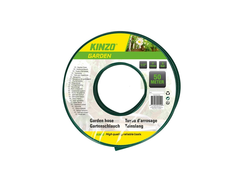 Productbeschrijving: Met deze 50 meter lange tuinslang van Kinzo Garden heb je een groot bereik. Handig om je tuin te sproeien of bijvoorbeeld je auto te wassen. De tuinslang heeft 3 lagen, die de slang extra duurzaamheid geven en zorgen dat hij goed in vorm blijft. .