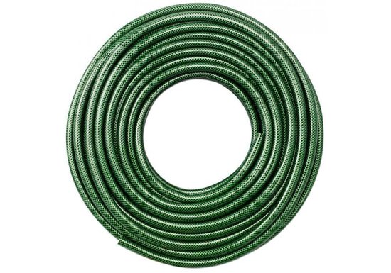 Productbeschrijving: Groene tuinslang / waterslang 15 meter. Deze groene tuinslang is UV-bestendig en heeft daardoor een lange levensduur. De 3-laags polyester kruisvlecht maakt hem geschikt voor een druk van 8 bar. Ideaal voor het vullen van een vijver/zwembad of voor het water geven van de planten. De slang heeft binnendiameter van 12.5mm