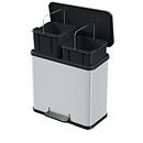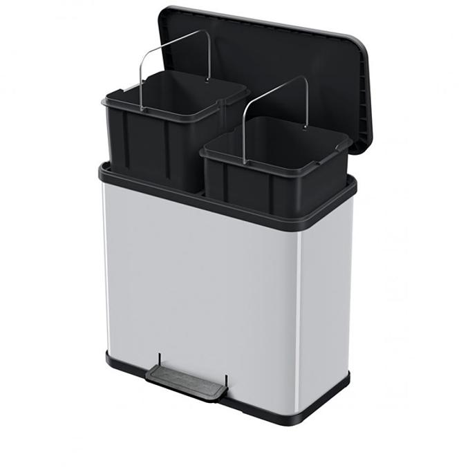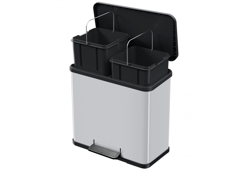 Productbeschrijving: Deze zilverkleurige Hailo Eco duo afvalscheider is voorzien van 2 binnenemmers van 14 liter en is daarmee geschikt voor voor tweevoudige afvalscheiding.