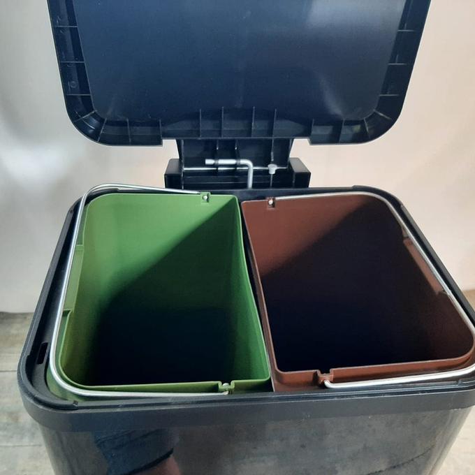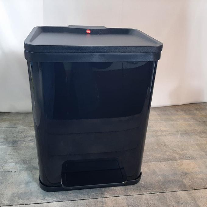 Productbeschrijving: Deze zwarte Hailo Öko duo Plus afvalscheider heeft 2 binnenemmers van 9 liter en is ideaal voor tweevoudige afvalscheiding.