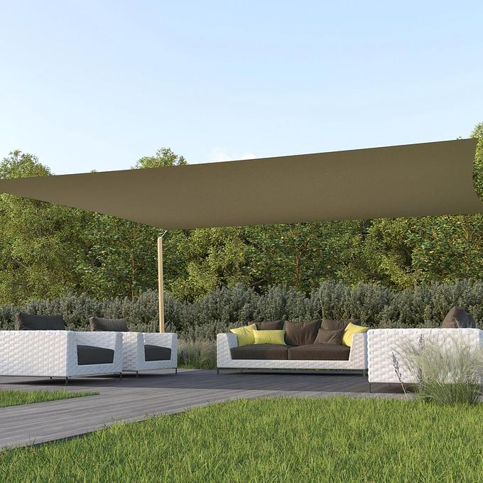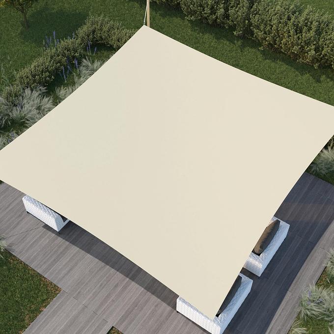 Vierkant schaduwdoek, afmeting: 500X500 cm. Het UV bestendige doek is waterdicht en weerbestendig.