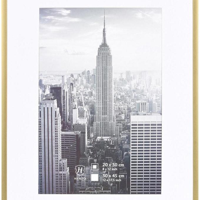 Productbeschrijving: Goud, het beste recept voor een chique uitstraling. De Henzo Manhattan fotolijst goud is een moderne fotolijst die gebruikt kan worden om een afbeelding aan de wand op te hangen of ergens neer te zetten. Voor het plaatsen van de foto open je de lijst aan de achterkant. Deze achterzijde is vastgemaakt met clips die je eenvoudig kunt losmaken. De lijst kan worden neergezet door gebruik te maken van de staander aan de achterkant. Ophangen kan ook, dit kan horizontaal en verticaal.