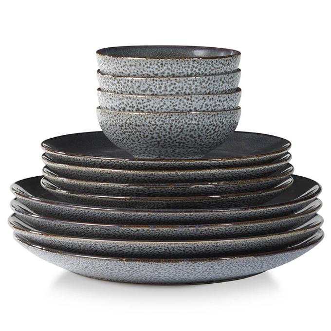 Over de Herman Den Blijker serviesset 12 delig 4 persoons donkergrijs