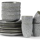 Voorzien van: 4 borden met diameter van 20cm, 4 borden met diameter van 27cm, 4 kommen met diameter van 9cm, 4 kommen met diameter van 15cm en 4 bekers
