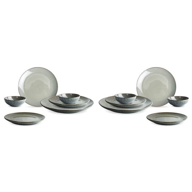 Productbeschrijving: Dit lichtgrijze 12-delige Herman den Blijker servies is uitgevoerd in hard aardewerk. Door toepassing van een 'reactief'glazuurproces hebben de producten een mooie diep warmgrijze kleur. De buitenzijde heeft een speciaal stroer voelbaar patroon waardoor het servies een stoere uitstraling krijgt. De onderdelen zijn los na te bestellen. Deze set bevat: 4 borden met een diameter van 20cm 4 borden met een diameter van 27 cm 4 kommen met een diameter van 12 cm
