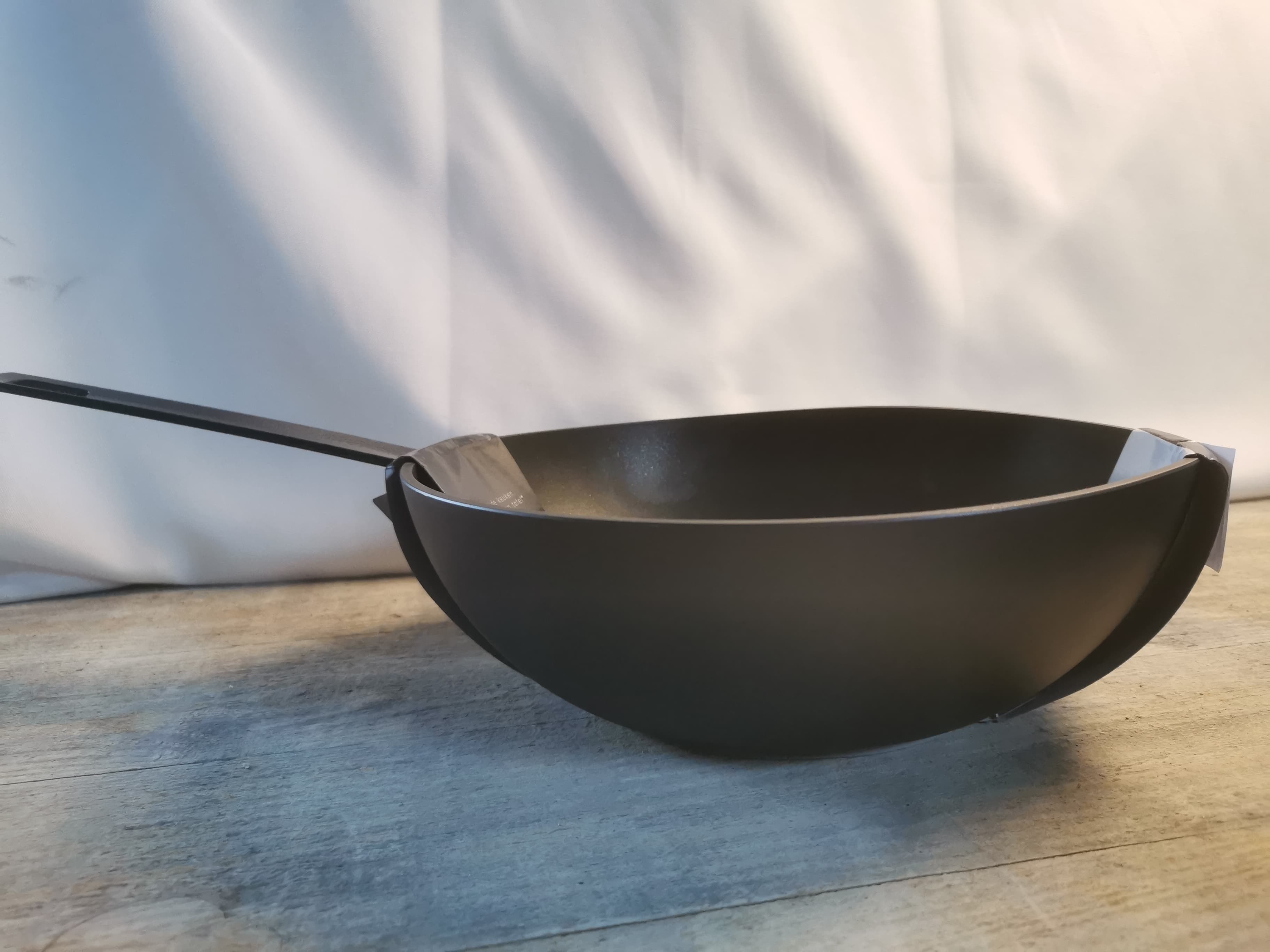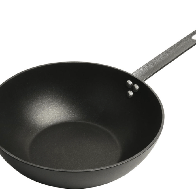 Productbeschrijving: Aluminium wok met een diameter van 28 cm van het merk Herman den Blijker. Deze pan is gemaakt uit dik aluminium met een extra dikke roestvrijstalen bodemplaat die kromtrekken tegengaat. Tevens is de pan voorzien van een drielaags slijtvaste Witford Eclipse anti-aanbaklaag die veelvuldig voor professionele doeleinden wordt toegepast. De pan is stoer vormgegeven met een stevige handel die niet warm wordt bij gebruik.
