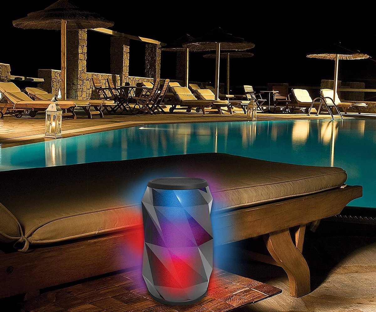 Productbeschrijving: Breng het feest overal met de iBT74E Bluetooth speaker met kleurverandering. De iBT74E heeft twee audiobronnen: Bluetooth draadloze audio streaming vanaf uw mobiele apparaat (iPad, iPhone, iPod, Android, Windows smartphones) of directe verbinding via de meegeleverde kabel en elk apparaat met een hoofdtelefoon-poort. Ingebouwde microfoon, digitale echo-onderdrukking en bediening voor beantwoorden / beëindigen maken handsfree praten een plezier. Zes kleurveranderende modi met meerdere kleuren tegelijkertijd voor leuke, fantastische kleureffecten.