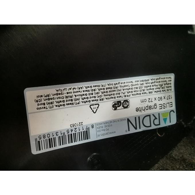 Productbeschrijving: De tuintafel Elise van het merk Jardin is zeer licht en praktisch. Hij is uit kunsthars gemaakt en de kleur is grafiet, dit is een mooie donkergrijze kleur. Deze tuintafel is bestand tegen alle soorten weersomstandigheden. De tafel is 6,9 kilo zwaar. Licht genoeg om hem eenvoudig te verplaatsen maar zwaar genoeg zodat hij niet wegwaait bij wat wind. Het tafelblad is 137 bij 90 centimeter groot en de tafel is 73 centimeter hoog.