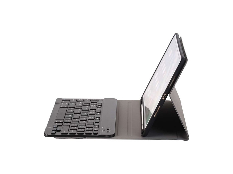 Productbeschrijving: Deze Just in Case Bluetooth Toetsenbord Hoes biedt meer dan alleen bescherming voor je iPad Air (2019) 10,5 inch. Met het geïntegreerde bluetooth toetsenbord tik je namelijk snel mailtjes of andere teksten op je iPad. Dankzij de ingebouwde standaard blijft je tablet rechtop staan tijdens het typen. Dit is ook handig als je juist even wilt ontspannen door iets op Netflix of YouTube te kijken. De stevige kunstlederen hoes zorgt er bovendien voor dat je tablet ook onderweg beschermd is tegen krassen en stoten. Dit hoesje is op maat gemaakt voor de iPad Air (2019) en sluit dus naadloos aan op je tablet.