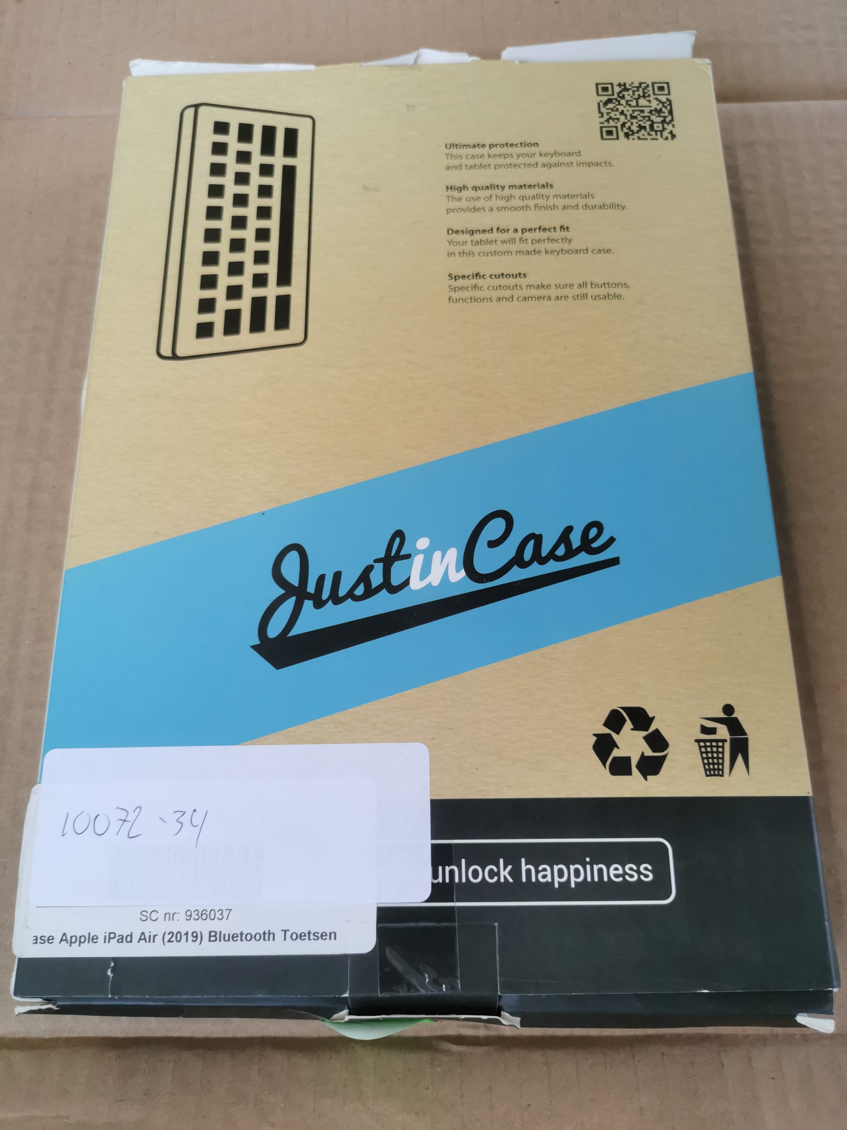 Over de Just In Case premium bluetooth keyboard case Apple ipad Air 2019
