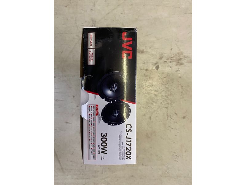 Productbeschrijving: JVC CS-J1720X. Luidspreker soort: 2-weg, Piekvermogen: 300 W, Nominaal vermogen: 30 W. Inbouwdiepte: 4,4 cm, Diameter woofer: 17 cm, Diameter hogetonenluidspreker: 2,5 cm. Woofer magnet type: Ferriet, Geluidsdruk niveau (max): 92 dB. Aantal per verpakking: 2 stuk(s)