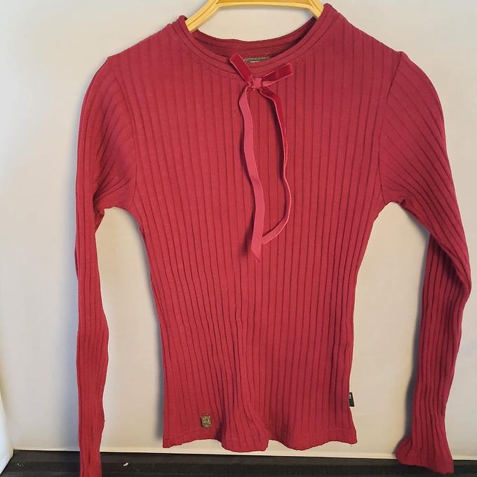 Kie Stone trui met strikje Bordeaux rood maat 122-128