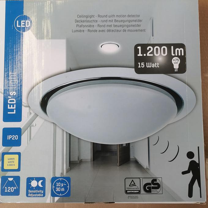 Productbeschrijving: Prachtige Plafondlamp met beweginssensor, de detectie hoek is 360* graden. Deze hoek is in te stellen vanaf 6,8 meter tot 12 meter. De tijd van hoelang hij blijft branden zijn ook in te stellin in 4 mogelijkheden.
