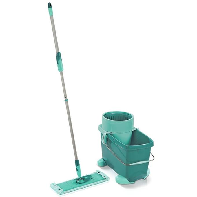 Productbeschrijving: Het Clean Twist-Disc Mop systeem van Leifheit is het perfecte systeem voor het reinigen van alle soorten vloeren (tegels, PVC, hout, laminaat). Dankzij het unieke Leifheit rotatiemechanisme worden water en vuil uit de mop geslingerd. Zonder te bukken of met je handen in vuil water reinig je moeiteloos de vloeren. Het revolutionaire uitwringmechanisme van Leifheit is in de steel van de mop verwerkt. Door meerdere malen te pompen kun je zelf bepalen hoe vochtig je de mop wilt hebben. De trolley met soepel rollende 360⁰ draaiende wieltjes zorgt voor een maximale flexibiliteit. Zo hoef je ook niet meer met zware emmers te slepen. De Clean Twist Disc Mop is eenvoudig te bedienen, staat stabiel (ook gedurende het roteren) en is gemakkelijk te monteren. De steel is uitgerust met het Leifheit click systeem. Zo kun je de mop met één klik loshalen en verwisselen voor een ander Leifheit opzetstuk met Click System. De set bestaat uit een vloerwisser met microvezel mop, steel met ingebouwd rotatiemechanisme en Leifheit Click System, slingerzeef, universele 20 liter emmer met stevig draaghengsel en een trolley.