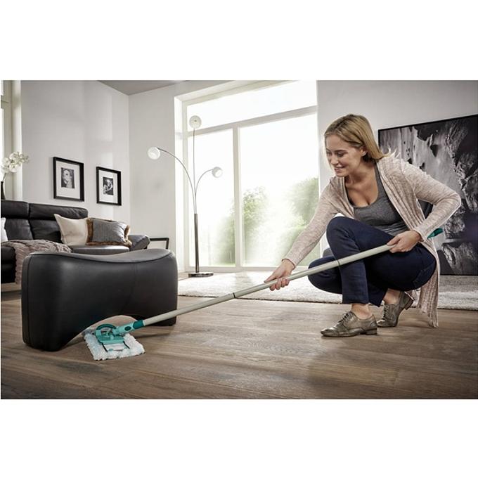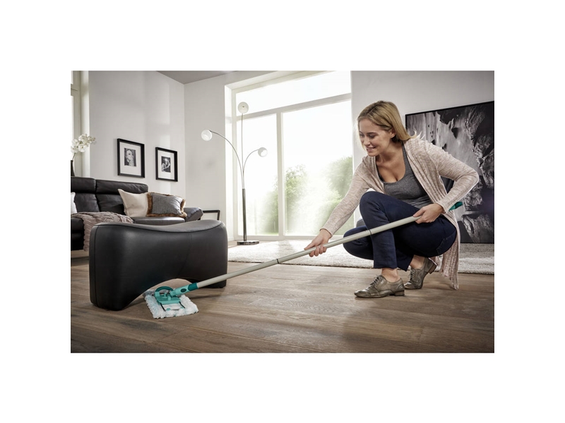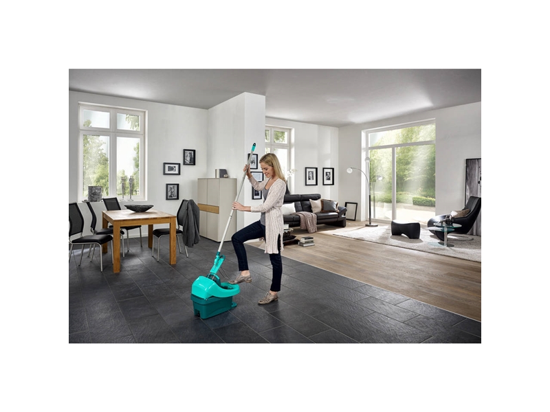 Productbeschrijving: Deze Leifheit Profi vloerwisser XL met uitwringpers op wielen is de ideale set voor het dweilen van laminaat, hout of plavuizenvloer. De vloerwisser met extra lange steel en een wisbreedte van 42cm is in het bijzonder geschikt voor het dweilen van grote oppervlakken. De emmer wordt geleverd met persopzet, die zich met een simpele voetbeweging en zonder krachtsinspanning laat bedienen. De emmer heeft een inhoud van 8 liter en is voorzien van wieltjes en dus makkelijk te verplaatsen. De vloerwisser is geschikt voor natte reiniging maar kan ook als vloerwisser voor droge reiniging worden gebruikt. Het geniale 360° draaischarnier maakt effectief reinigen met slingerbeweging mogelijk en omcirkelt tafel- en kastpoten. Ook ideaal voor het schoonmaken op moeilijk bereikbare plekken zoals onder kasten, tafels, banken en bedden. Set bestaat uit een Profi emmer met wieltjes en persopzet en een Profi vloerwisser met micro duo doek.