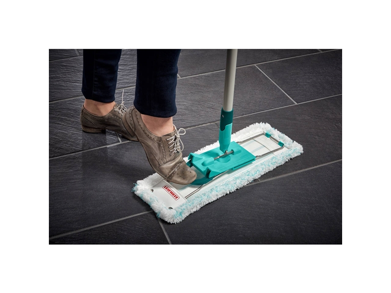 Productbeschrijving: Deze Leifheit Profi vloerwisser XL met uitwringpers op wielen is de ideale set voor het dweilen van laminaat, hout of plavuizenvloer. De vloerwisser met extra lange steel en een wisbreedte van 42cm is in het bijzonder geschikt voor het dweilen van grote oppervlakken. De emmer wordt geleverd met persopzet, die zich met een simpele voetbeweging en zonder krachtsinspanning laat bedienen. De emmer heeft een inhoud van 8 liter en is voorzien van wieltjes en dus makkelijk te verplaatsen. De vloerwisser is geschikt voor natte reiniging maar kan ook als vloerwisser voor droge reiniging worden gebruikt. Het geniale 360° draaischarnier maakt effectief reinigen met slingerbeweging mogelijk en omcirkelt tafel- en kastpoten. Ook ideaal voor het schoonmaken op moeilijk bereikbare plekken zoals onder kasten, tafels, banken en bedden. Set bestaat uit een Profi emmer met wieltjes en persopzet en een Profi vloerwisser met micro duo doek.