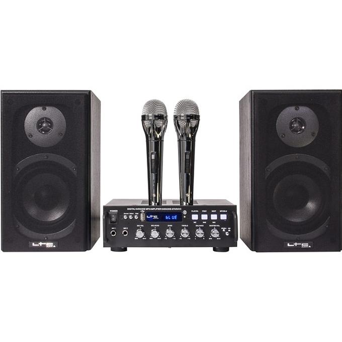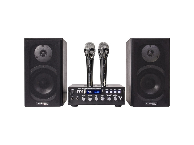 Productbeschrijving: Met de LTC Audio Karaoke Star 4 gaat jouw karaoke avond direct van start. De set bestaat bevat 2 speakers en 2 microfoons, waardoor je direct begint met zingen. Via Bluetooth stream je muziek van jouw telefoon of tablet naar de versterker. In de line en usb ingang plug je eveneens een muziekbron in. In de microfoons zingen jij en je vrienden jullie favoriete nummers. Jullie stemmen klinken krachtig uit de meegeleverde speakers. Kan jouw zangstem wel iets extra's gebruiken? Je voegt gemakkelijk geluidseffecten toe aan de nummers. Of ga een stap verder en vervorm je stem met de stemvervormer.