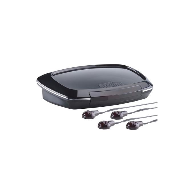 Productbeschrijving: De Invisible Control Black4 Remote Extender laat je apparaten bedienen, terwijl deze achter gesloten deuren in de kast zijn weggewerkt. Zo heeft stof geen kans en ook is je apparatuur veilig voor bijvoorbeeld huisdieren of kleine kinderen. Plaats simpelweg de IR ontvanger op een plaats waar je afstandsbediening bereik heeft en plaats de sensor van de verlengkabels op de ontvanger van de apparatuur die je wilt bedienen. De ontvanger werkt op een 9V batterij of netvoeding. Met de Marmitek Invisible Control bedien je vier apparaten die uit het zicht staan.