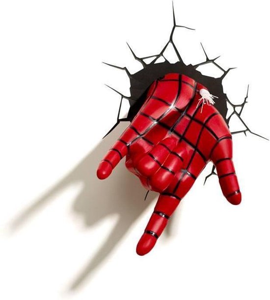 Productbeschrijving: Originele/licentie Spider-man Hand 3D light Deze lamp wordt geleverd met een ‘crack sticker’ waardoor het lijkt alsof Spider-Man Hand dwars door de muur komt geknald. Deze fantastische Spider-Hand lamp is draadloos en werkt op batterijen zodat je hem overal op kunt hangen. Door de fantastische uitstraling van de lamp, is deze geschikt voor voor bijna elke kamer, ziet er geweldig uit ongeacht of de lamp aan of uit staat. Kan op 2 manieren worden gemonteerd (bovenkant hand of de handpalm)