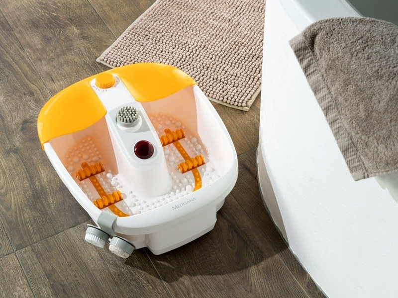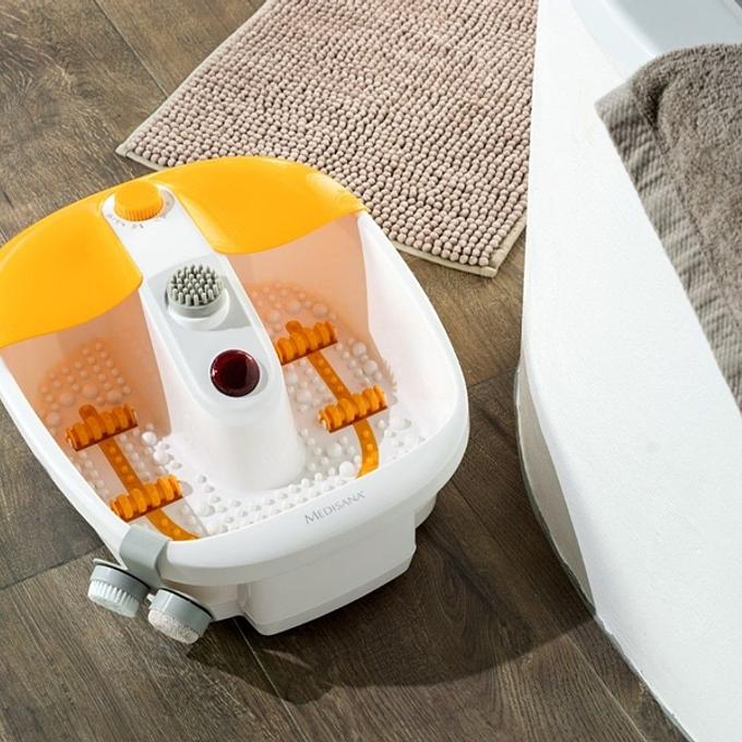 Productbeschrijving: Je voeten laten ontspannen en optimaal verzorgen, met het Medisana voetbubbelbad FS883. Deze voetspa geeft de voeten een ontspannende vibratiemassage in combinatie met een aangename roodlicht zone. Een speciale functie zorgt ervoor dat het water warm blijft. De FS 883 bevat 3 verwisselbare pedicure opzetstukken: eeltverwijderaar, borstel en massage opzetstuk. Dit massage opzetstuk is voor een heerlijke voetreflexmassage. Dit praktische voetenbubbelbad is ook geschikt voor droge massage. Anti-slip oppervlak met afneembare spatbescherming maken de FS 883 helemaal compleet.