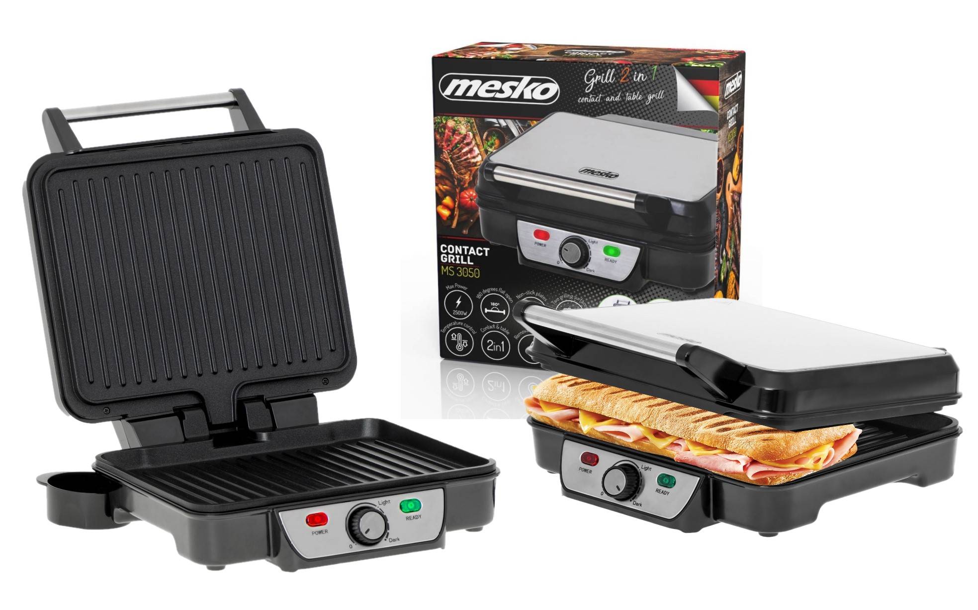 Productbeschrijving: Met het maximale vermogen van 2500 W Mesko MS 3050 elektrische grill kunt u een breed scala aan warme gerechten bereiden - van hamburgers, steaks, kip en ander vlees tot gegrilde kaas en groenten. De verwarmingsplaten zijn bedekt met een Teflon-coating waardoor het eten niet blijft plakken, zodat je de grill binnen enkele seconden schoonmaakt. Je kunt er ook gezondere gerechten mee bereiden omdat je geen vet hoeft te gebruiken. De MS 3050 heeft een grilloppervlak dat groot genoeg is om een maaltijd voor een gezin of een groep vrienden te bereiden.