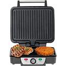 Voorzien van: Tafelgrill functie: 180 graden Grilloppervlak na uitgevouwen: 1288 cm2 Groot bordoppervlak van 28 * 23 cm Temperatuurregeling Grillplaten met antiaanbaklaag Controlelampen Afneembare lekbak Cool touch-handvat Antislip rubberen voetjes Inclusief spatel Max. Vermogen 2500W Nom. Vermogen 1800W