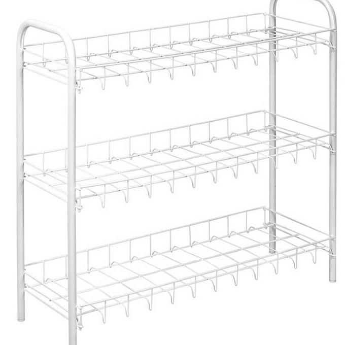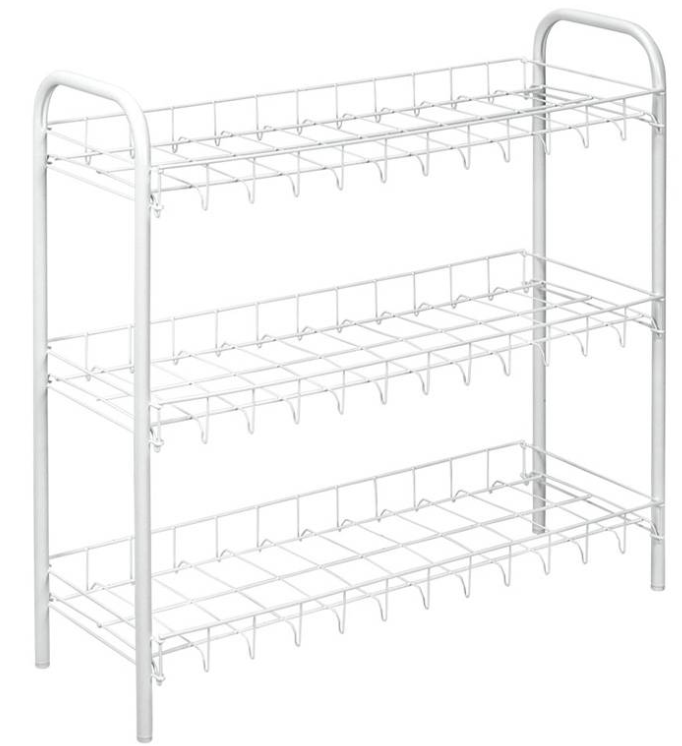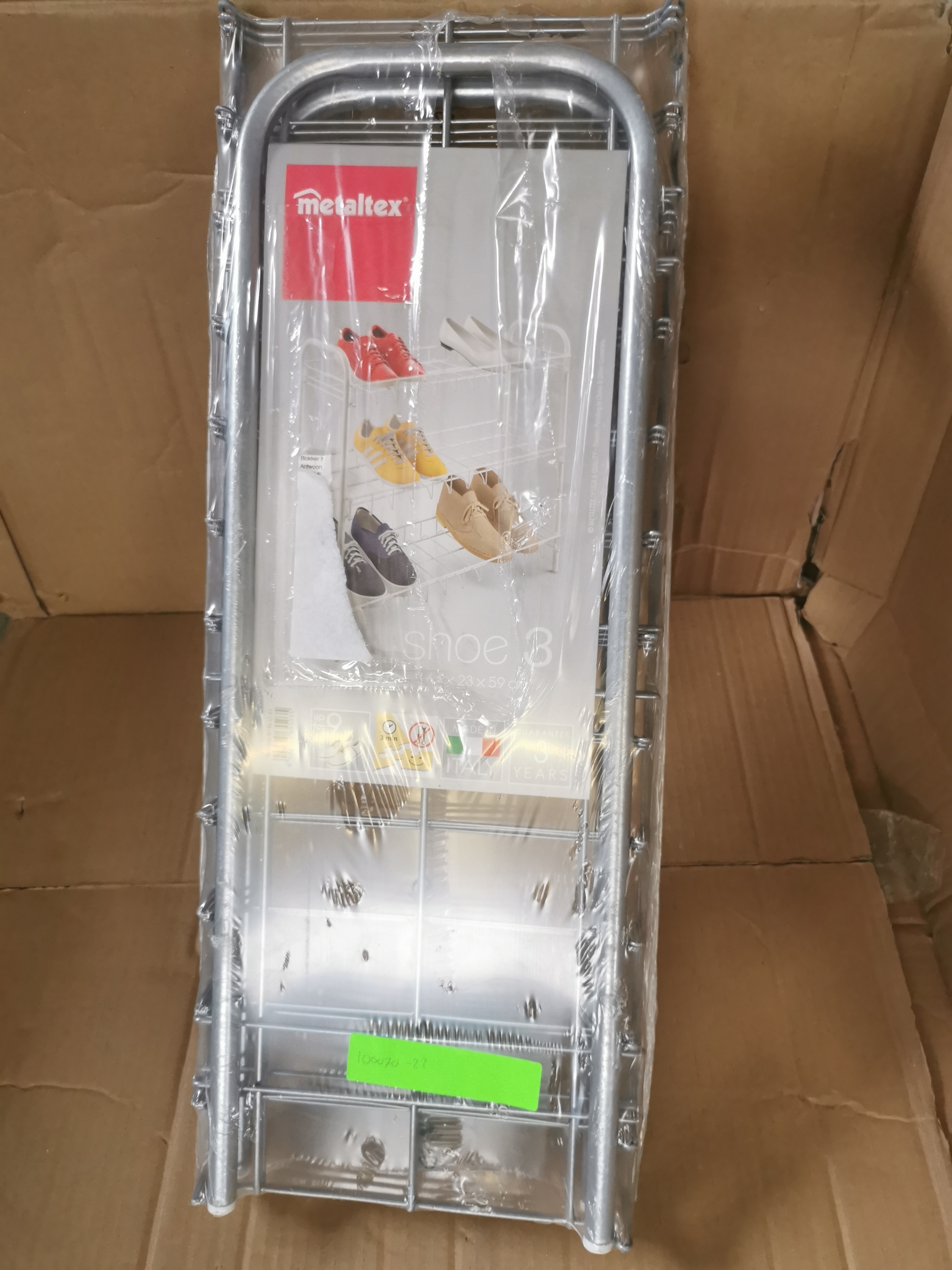 Productbeschrijving: Met dit eenvoudige maar solide metalen schoenenrek kunt u uw schoenen netjes en geordend op een vaste plaats opbergen. Door de geringe diepte is dit schoenenrek ook uitermate geschikt voor in kleinere ruimtes. Juist omdat er zoveel verschillende soorten schoenen en maten verkrijgbaar zijn en iedere thuissituatie om die reden anders kan zijn, is het erg moeilijk te zeggen hoeveel paar schoenen er nu in dit schoenenrek opgeborgen kunnen worden. Gemiddeld gezien houden wij het op 9 paar.