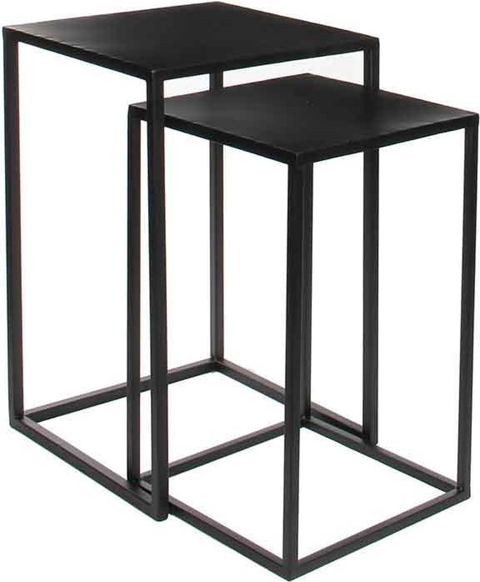 Productbeschrijving: Bij deze stoere set van Goa tafels van Mica Decorations geldt: twee is mooier dan één. De bijzettafels zijn gemaakt van metaal en hebben een zwarte kleur. Ze staan mooi bij elkaar, maar kunnen ook gescheiden van elkaar worden neergezet. De afmetingen van de tafeltjes zijn L30 x B30 x H48,5 cm en L35 x B35 x H55 cm. Tip: gebruik ze eens als plantenstandaard. De draagkracht per tafel is 15 kg.