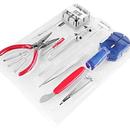 Onderdelen: 3 x magnetische precisie gleuf schroevendraaier, 1 x Link Remover, 1 x pinverwijderaar, 1 x horlogekast houder, 1 x metaal en kunststof hamer, 2 x Phillips schroevendraaier, 1 x mes, 1 x verstelbare behuizing opener, 1 x roestvrij stalen pincet, 3 x pin punch en een 1 x Punttang met zijkniptang.