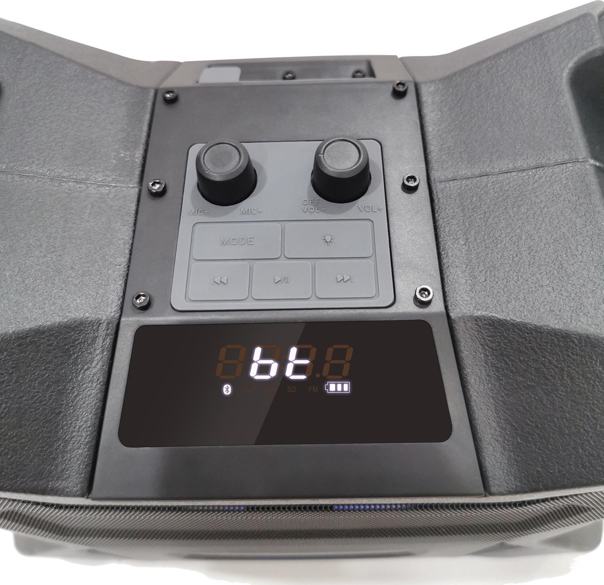 Productbeschrijving: Met de robuuste N-Gear ' The X' bouw je waar je maar wilt een feestje met je favoriete muziek. De speaker is waterdicht (IPX5) en is daarom ideaal om buiten te gebruiken, bijvoorbeeld op de bouw. Met de lichteffecten en meegeleverde microfoon maak je er helemaal jouw show van. Op gemiddeld volume gaat de batterij wel tot 8,5 uur mee en binnen 5 uur is hij weer volledig opgeladen.