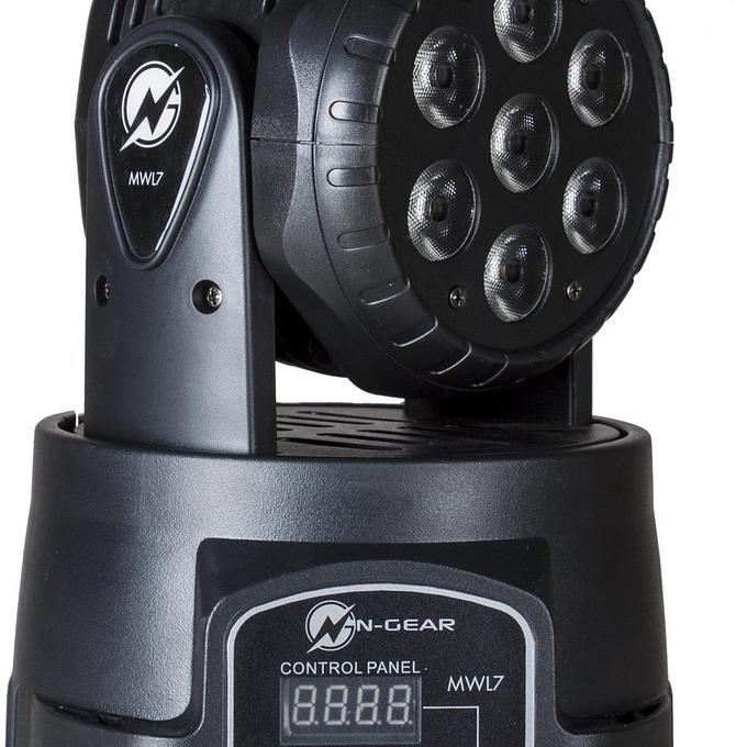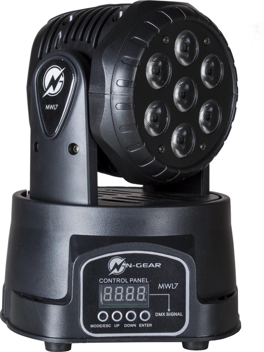 Productbeschrijving: De N-GEAR Move Wash Light 7 is een krachtige Wash Moving Head in een compact formaat. De 7 x 10 Watt RGB Led's in de N-GEAR Move Wash Light 7 kunnen muziekgestuurd of op 1 van de programma's draaien. Met de meegeleverde afstandsbediening kan je ongemerkt de instellingen aanpassen en snel de juiste sfeer maken die jij wilt! Wat is een Moving head precies? De naam zegt het eigenlijk al: Bewegend hoofd. Een moving head is een bewegende lichtshow die licht kan schijnen in alle denkbare kleuren prieces op de BEAT en met de instellingen die jij wilt! Het licht kan overal komen. Het artikel is gemaakt voor elk feestje, van een festival, een club of gewoon jouw feestje thuis! Bedien het apparaat met de afstandsbediening of laat hem zelfstandig een gave lichtshow geven.