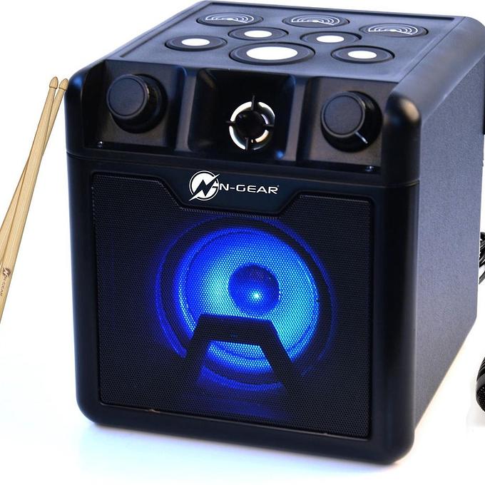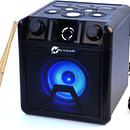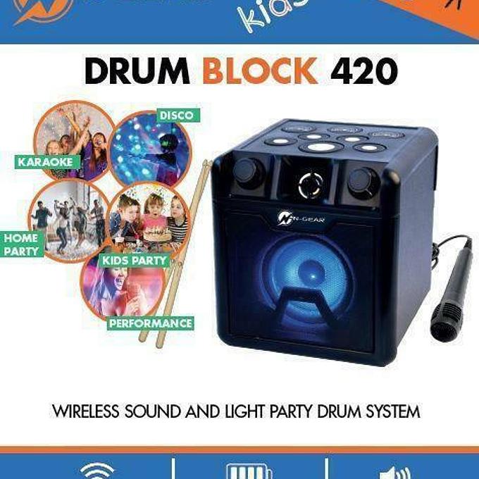 Productbeschrijving: De Drum Block 420 is een krachtige lichtgewicht Bluetooth Drum & Karaoke Speaker die je overal mee naar toe kunt nemen. Je tovert elke plek om tot concertzaal met de ingebouwde drumpads en accu die tot wel 6 uur mee gaat. Het maximale vermogen van 50 Watt is genoeg om een grote kamer te vullen. Je kunt muziek afspelen via bluetooth, USB of MicroSD. Samen met de bijgeleverde microfoon kan je bijvoorbeeld een Karaoke Feestje houden, een presentatie geven, een verhaal voorlezen of een optreden doen.