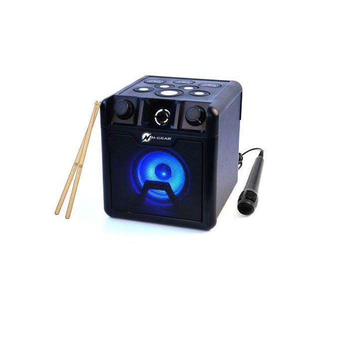 Productbeschrijving: De Drum Block 420 is een krachtige lichtgewicht Bluetooth Drum & Karaoke Speaker die je overal mee naar toe kunt nemen. Je tovert elke plek om tot concertzaal met de ingebouwde drumpads en accu die tot wel 6 uur mee gaat. Het maximale vermogen van 50 Watt is genoeg om een grote kamer te vullen. Je kunt muziek afspelen via bluetooth, USB of MicroSD. Samen met de bijgeleverde microfoon kan je bijvoorbeeld een Karaoke Feestje houden, een presentatie geven, een verhaal voorlezen of een optreden doen.