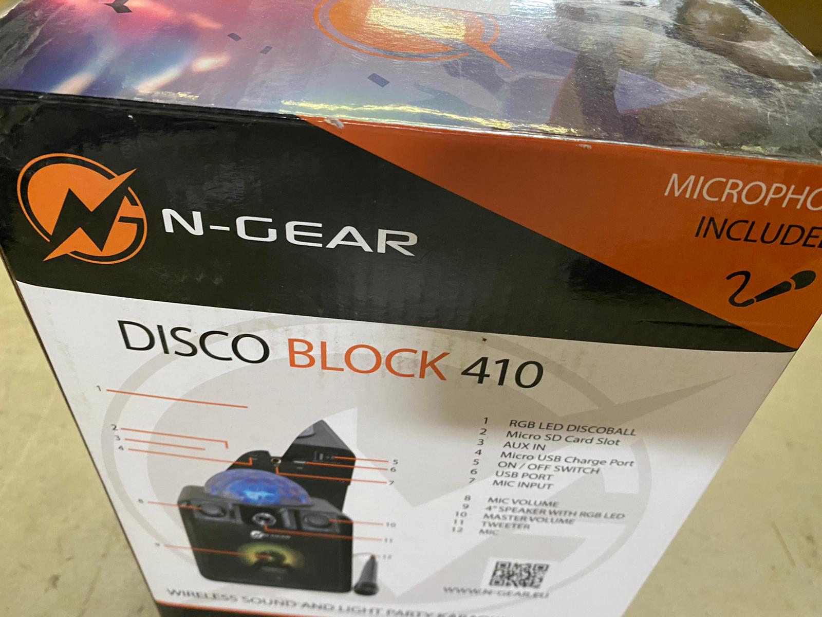 Over de N-Gear portable karaoke set Disco block 410 met microfoon