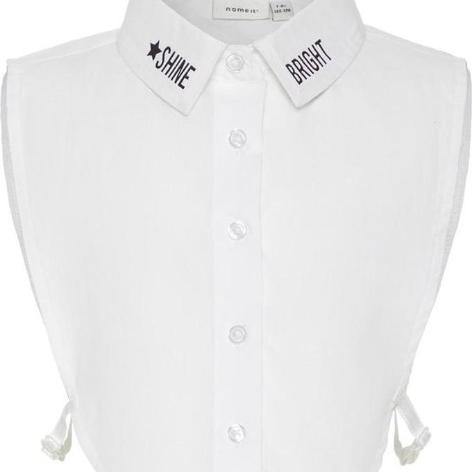 Productbeschrijving: Witte name it kraag met een leuk ster detail. Het kraagje is voorzien van een knoopsluiting en verstelbare taillebandjes aan de zijkanten. Leuk onder een trui of tuniek.