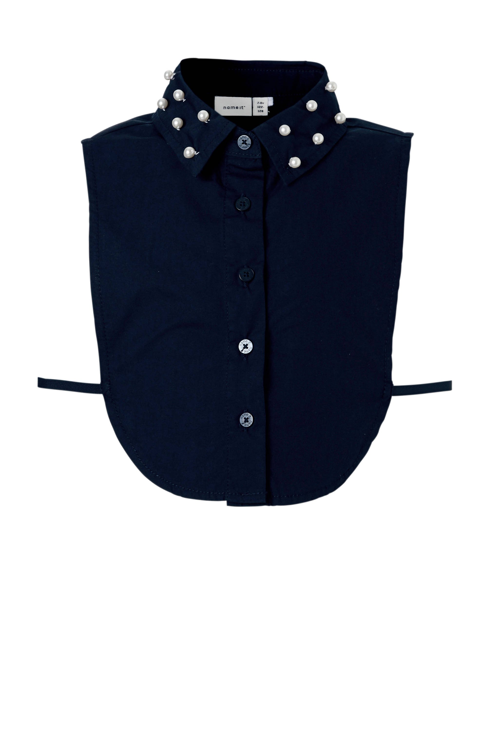 Productbeschrijving: Losse kraag voor meisjes van het merk name it. Deze kraag is uitgevoerd in organisch katoen. Dit model is voorzien van knoopjes, een blousekraag bedekt met parels en heeft elastische bandjes aan de zijkant die verstelbaar zijn.