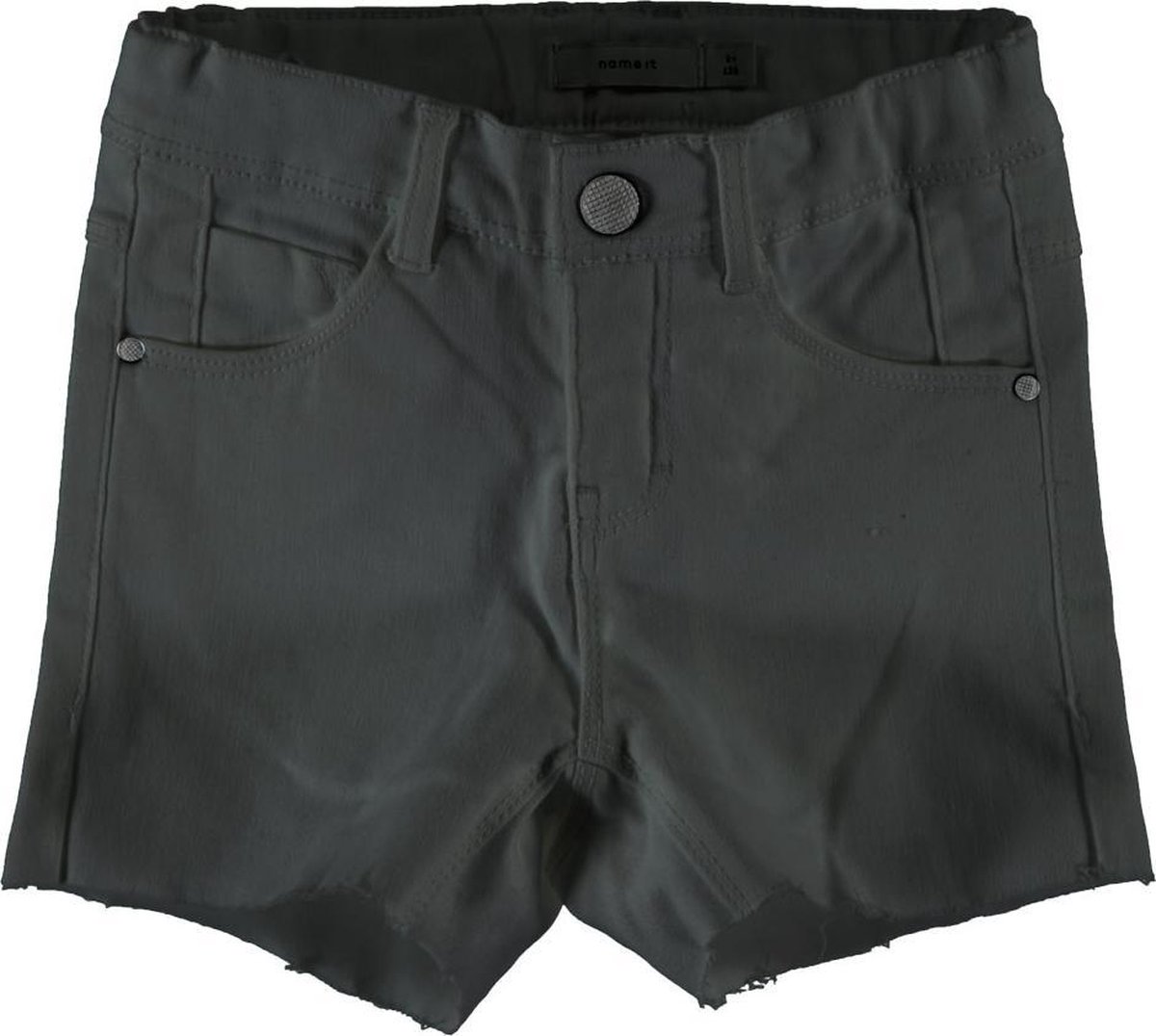 Productbeschrijving: De NitTorina slim dnm shorts van Name it is een 5 pocket model in het zwart. Het is een slimfit short met elastan en heeft een verstelbare taille band, knoop en ritssluiting.