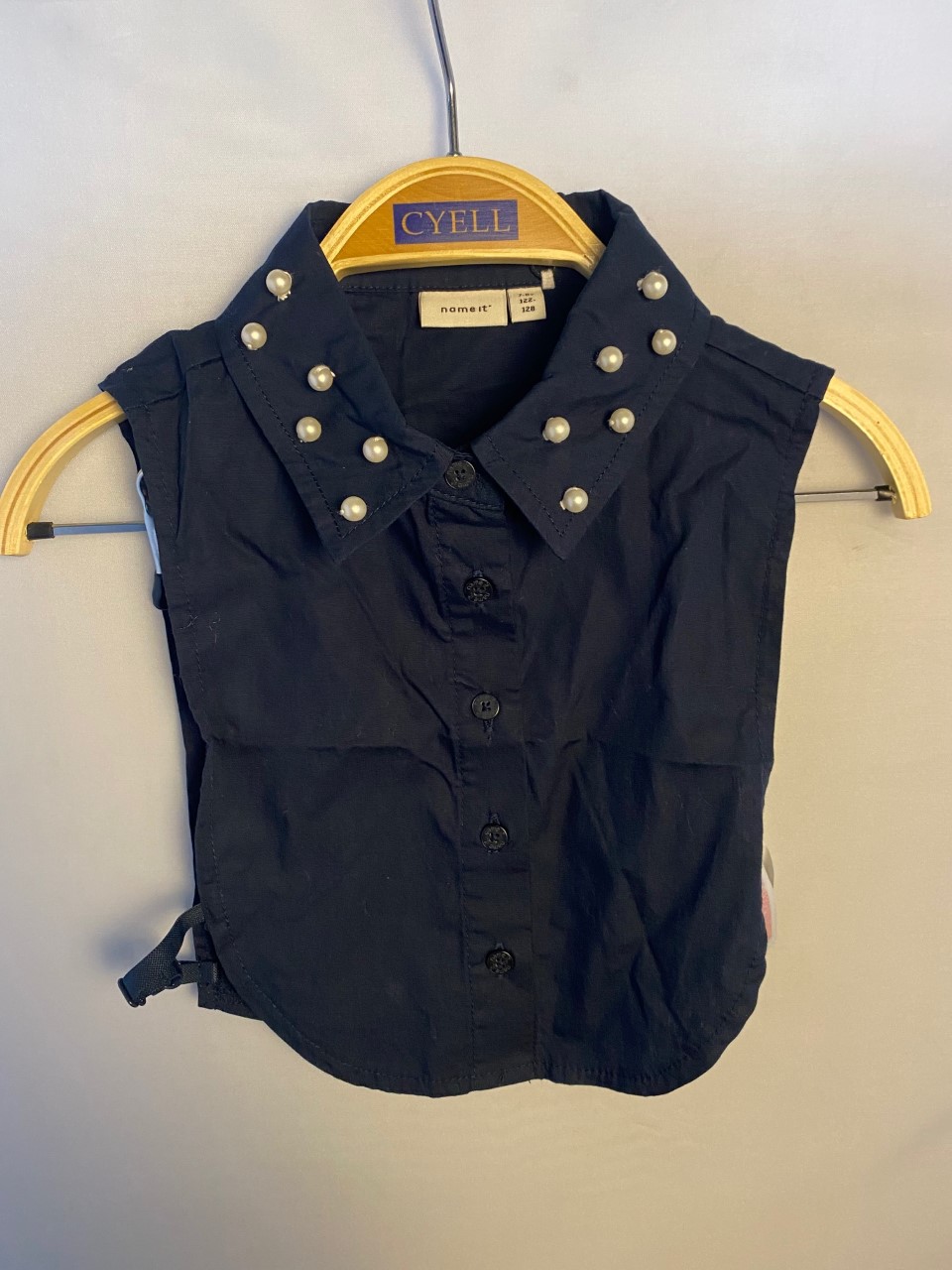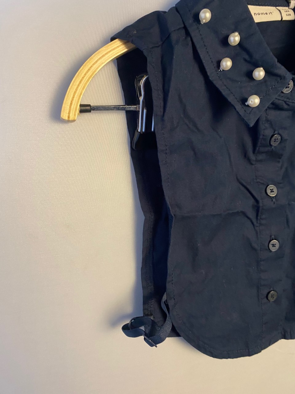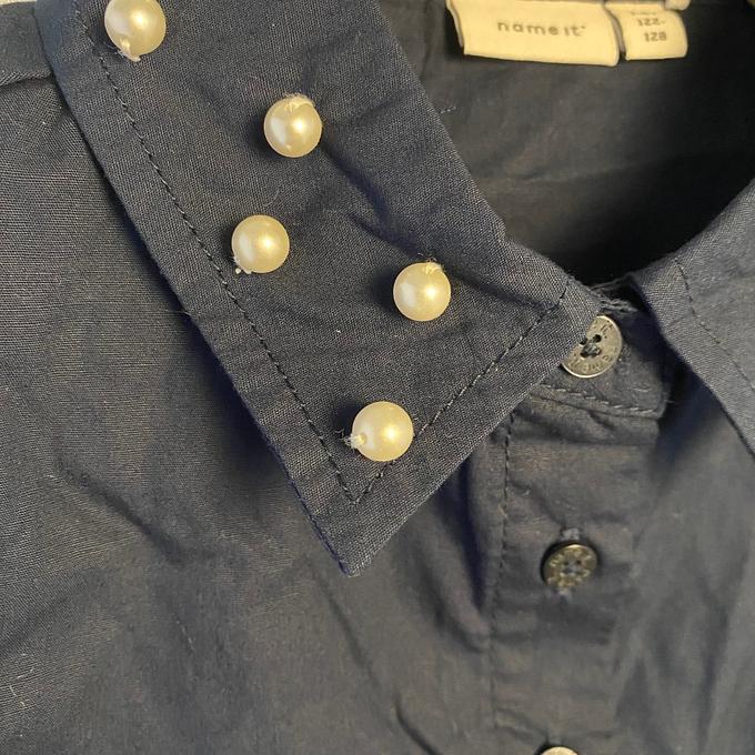 Over de Name It mouwloos blousje Dark saphire met parels maat 122-128
