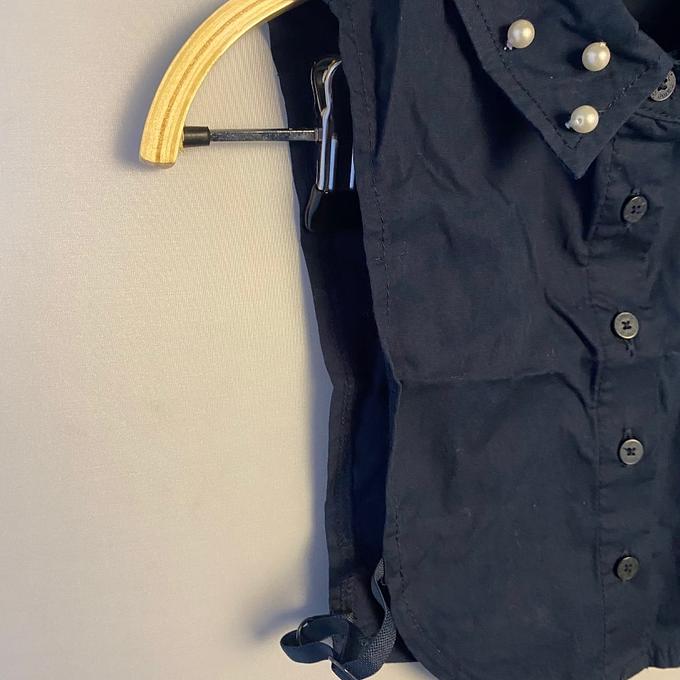Productbeschrijving: Namit blousje zonder mouwen. Het blousje is voorziek van parels in de kraag en is open aan de zijkant, zie foto's.
