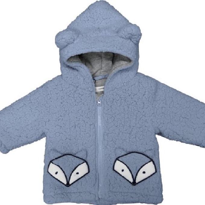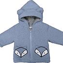 Productbeschrijving: Lichtblauw teddy jasje voor Baby jongens. Het jasje is voorzien van een capuchon en een ritssluiting. Op het voorpand zitten twee steekzakjes in de vorm van vosjes.