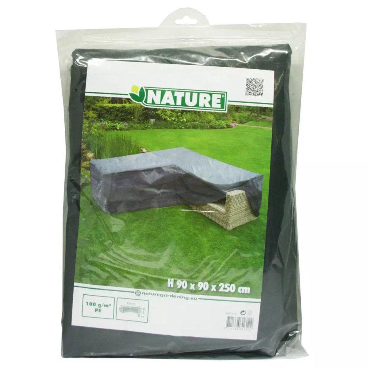 Productbeschrijving: Nature Tuinmeubelhoes voor loungeset met hoekopstelling. Deze grijskleurige beschermhoes is gemaakt van polyethyleen, is uv-bestendig en heeft een dichtheid van 100 g/m2. De tuinmeubelhoes wordt geleverd inclusief ogen en nylonkoord onder aan de hoes. Deze hoes beschermt uw tuinmeubel tegen diverse weersomstandigheden en stof.