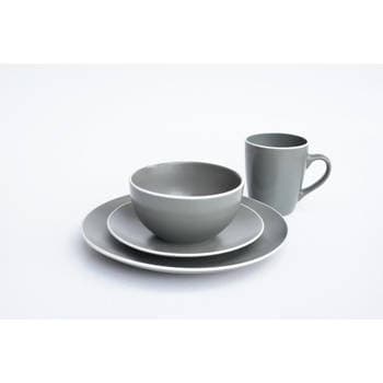 Onderdelen: 3 ontbijtborden, 3 kommen en 3 mokken